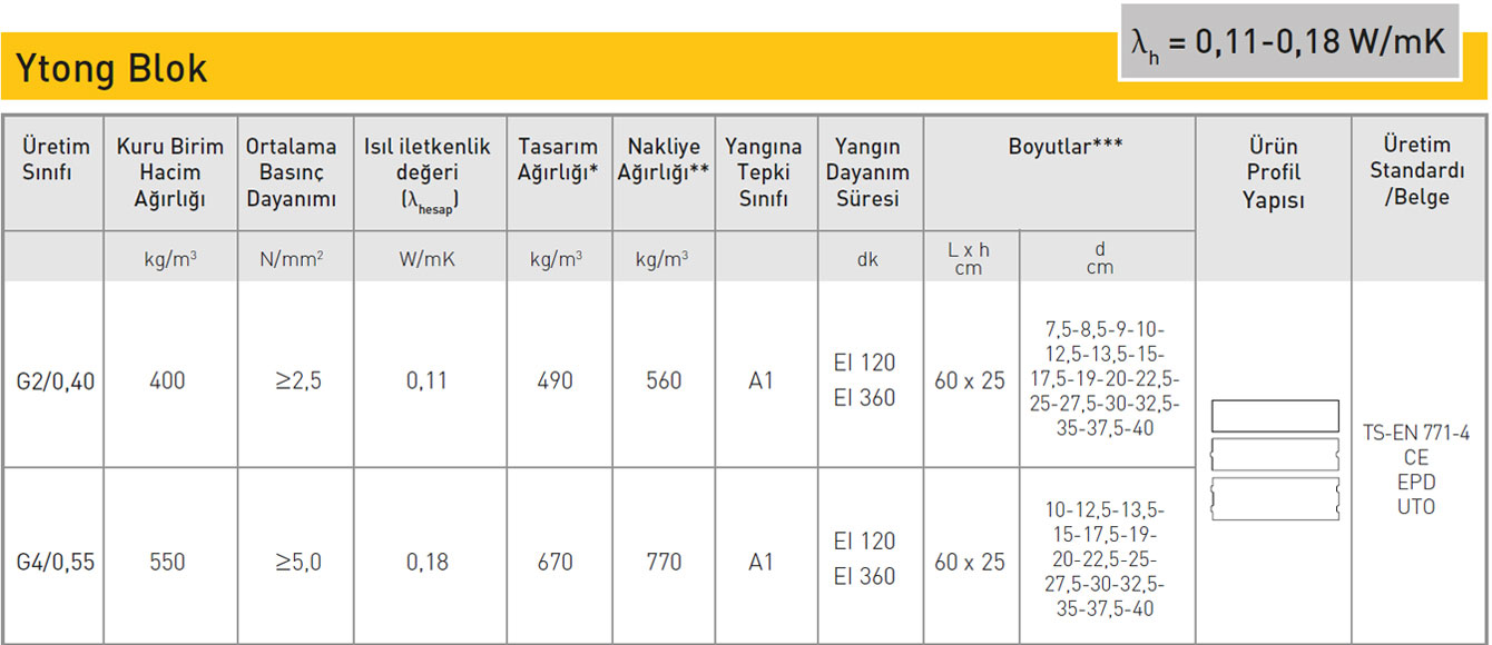 - Bu bilgiler genel bilgilerdir. Ürünle ilgili güncel bilgiler için Ytong’un resmi web sitesini veya yetkili satıcılarını kontrol etmenizi tavsiye ederiz.
