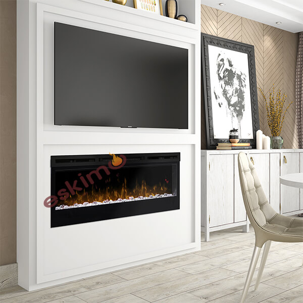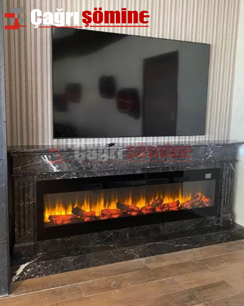 • Televizyon Ünitesi Elektrikli Şömineler: Televizyon ünitesi elektrikli şömineler, televizyon ünitesine entegre edilerek şık bir görünüm sağlar.